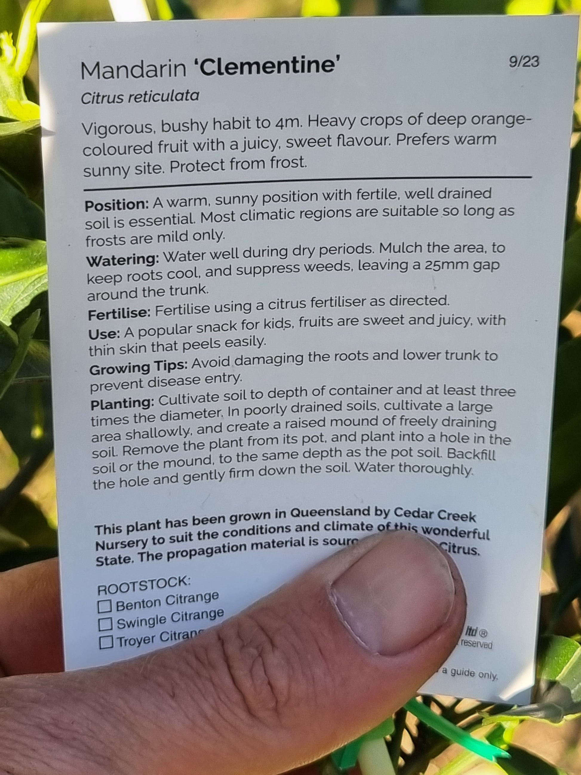 - Fertilising: Apply a balanced citrus fertiliser as directed during the growing season