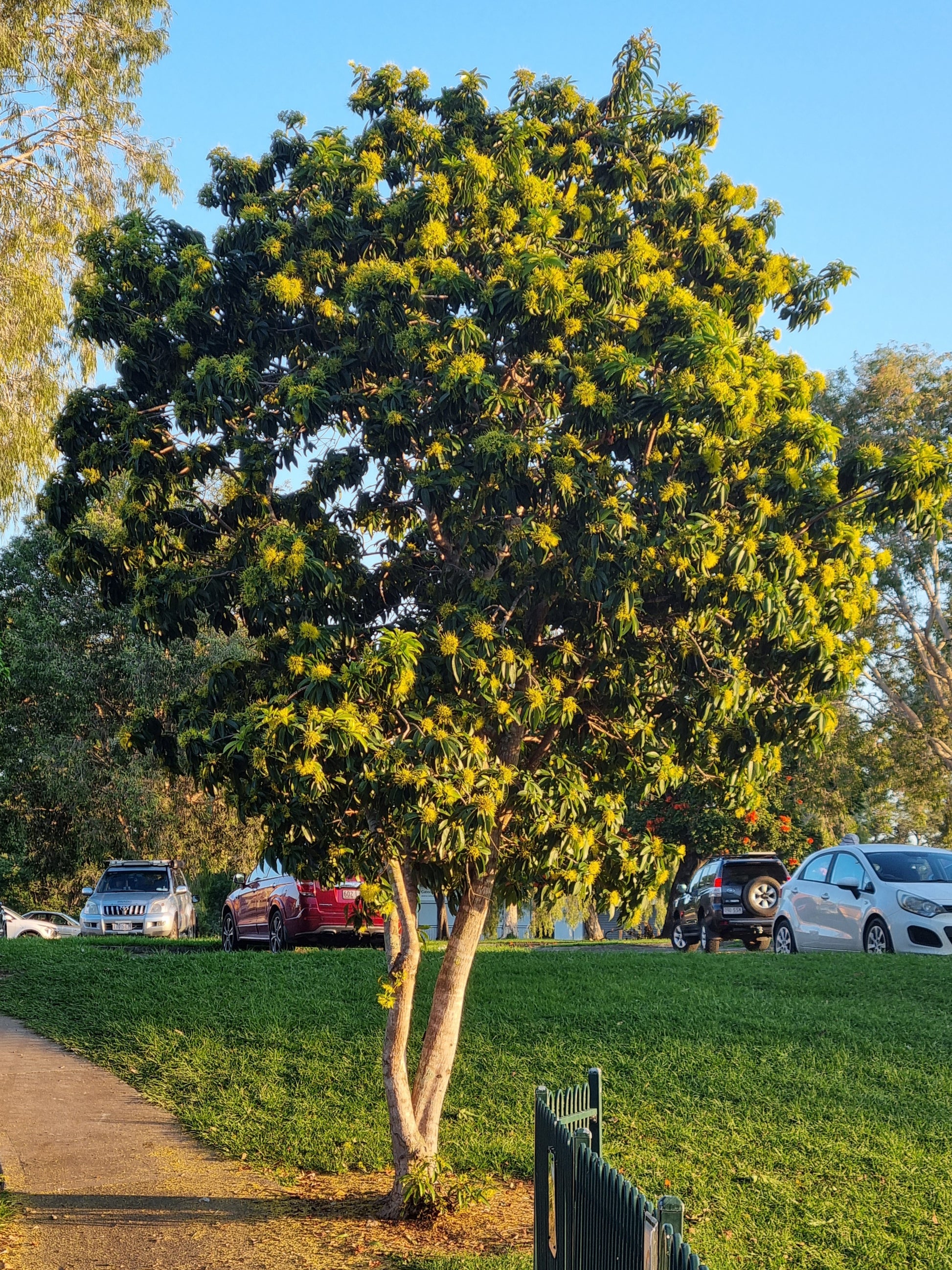 The Golden Penda is a long-lived, medium-sized rainforest tree native to northeast Queensland, known for its spectacular golden flowers and dense, lush foliage. It grows rapidly in warm, humid conditions and provides excellent shade with its broad, dense canopy. This species is highly adaptable and can be pruned for various purposes, including hedging, screening, or even shaping into an elegant topiary. The nectar-rich flowers are a treat for birds, bees, and even humans, making it a valuable addition to wildlife-friendly gardens.