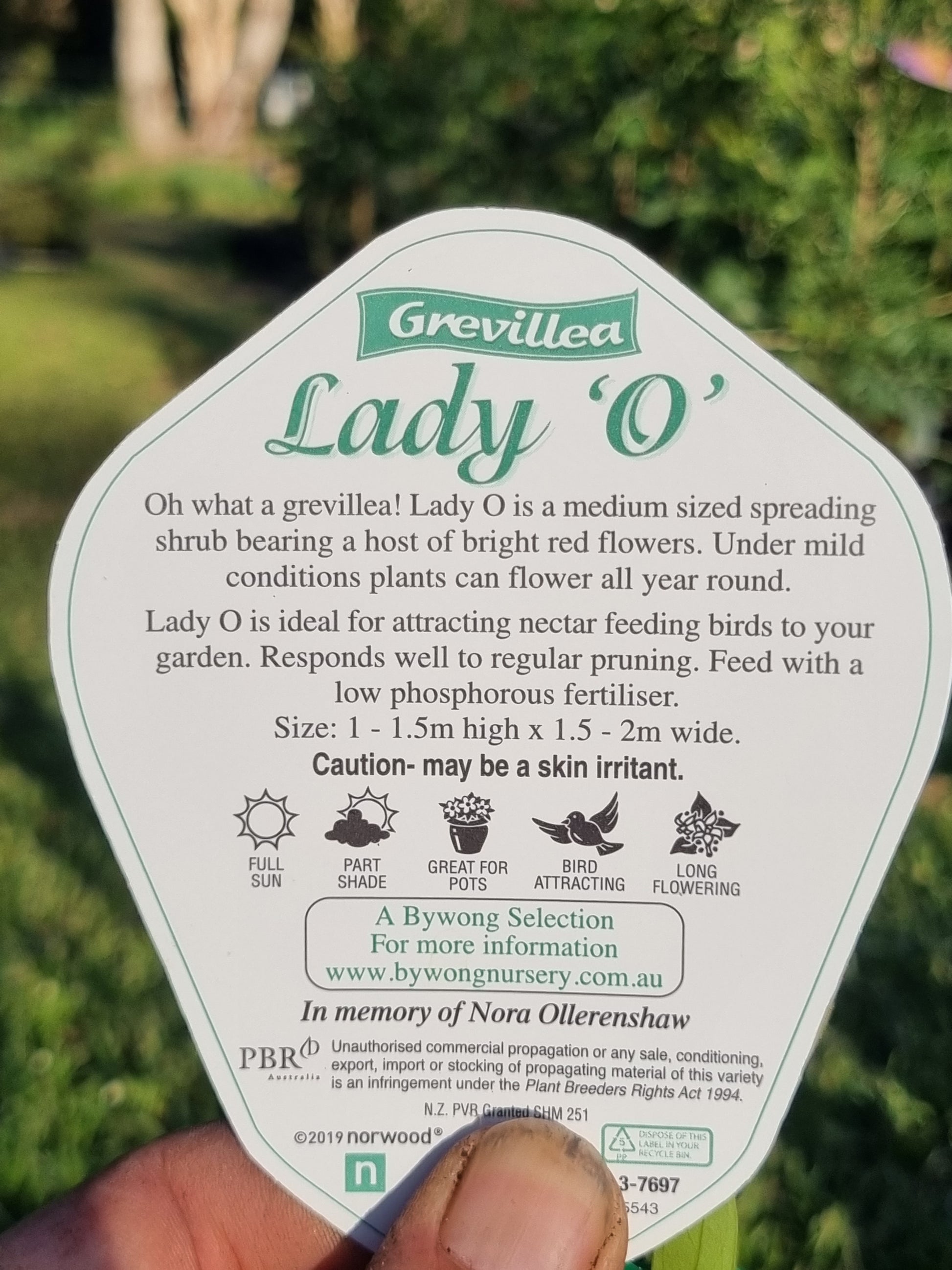 Grevillea 'Lady O' is a medium-sized spreading shrub known for its vibrant red flowers and low maintenance. This hardy and compact plant is perfect for small gardens, pots, and attracting birds, thriving in full sun to partial shade.