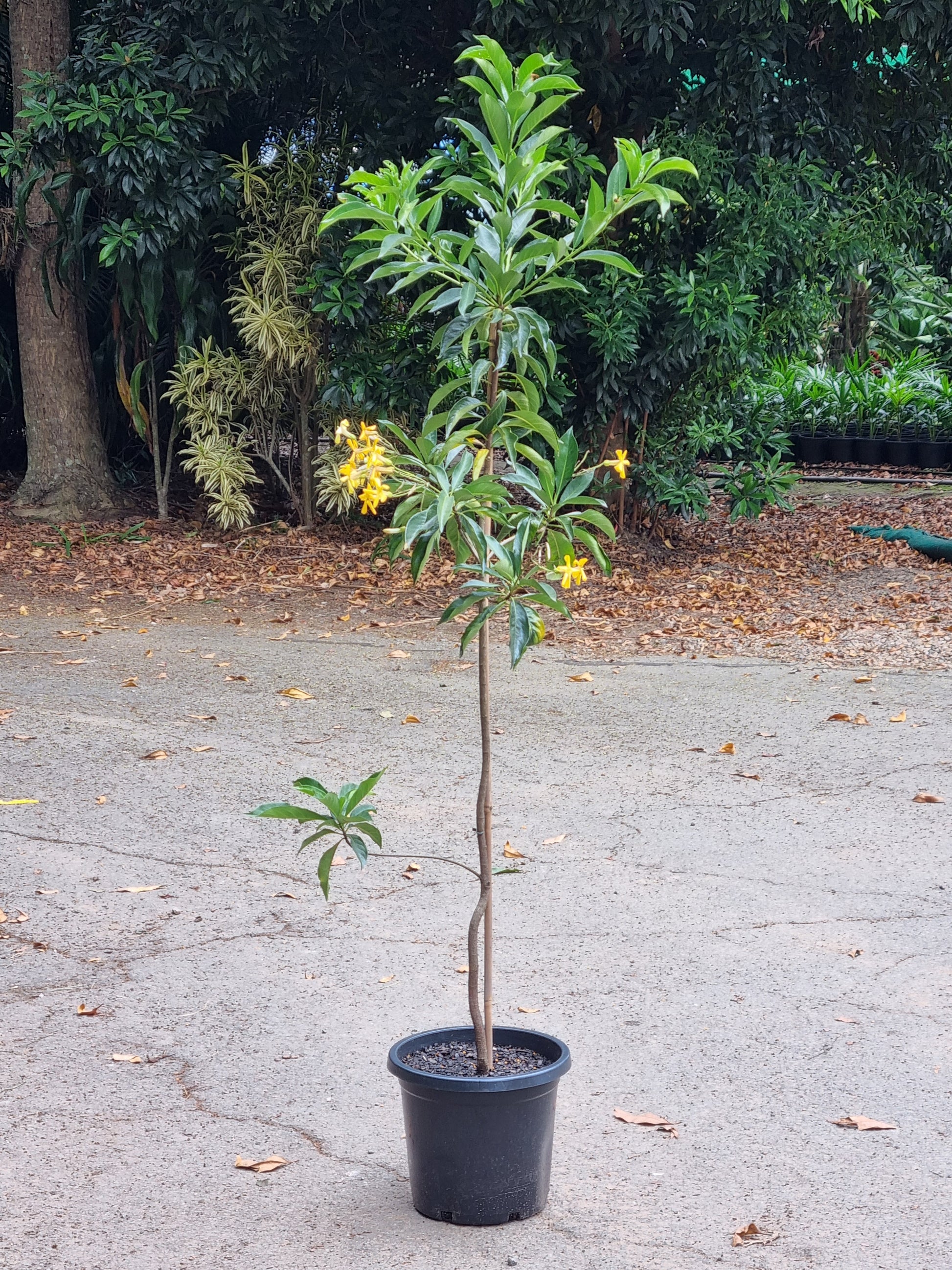 Native Frangipani is a medium-sized, evergreen Australian tree prized for its glossy foliage and clusters of creamy-yellow, highly fragrant flowers that fill the garden with a sweet perfume from early spring into summer. Its narrow, upright habit makes it perfect for small gardens, courtyards, and feature plantings.