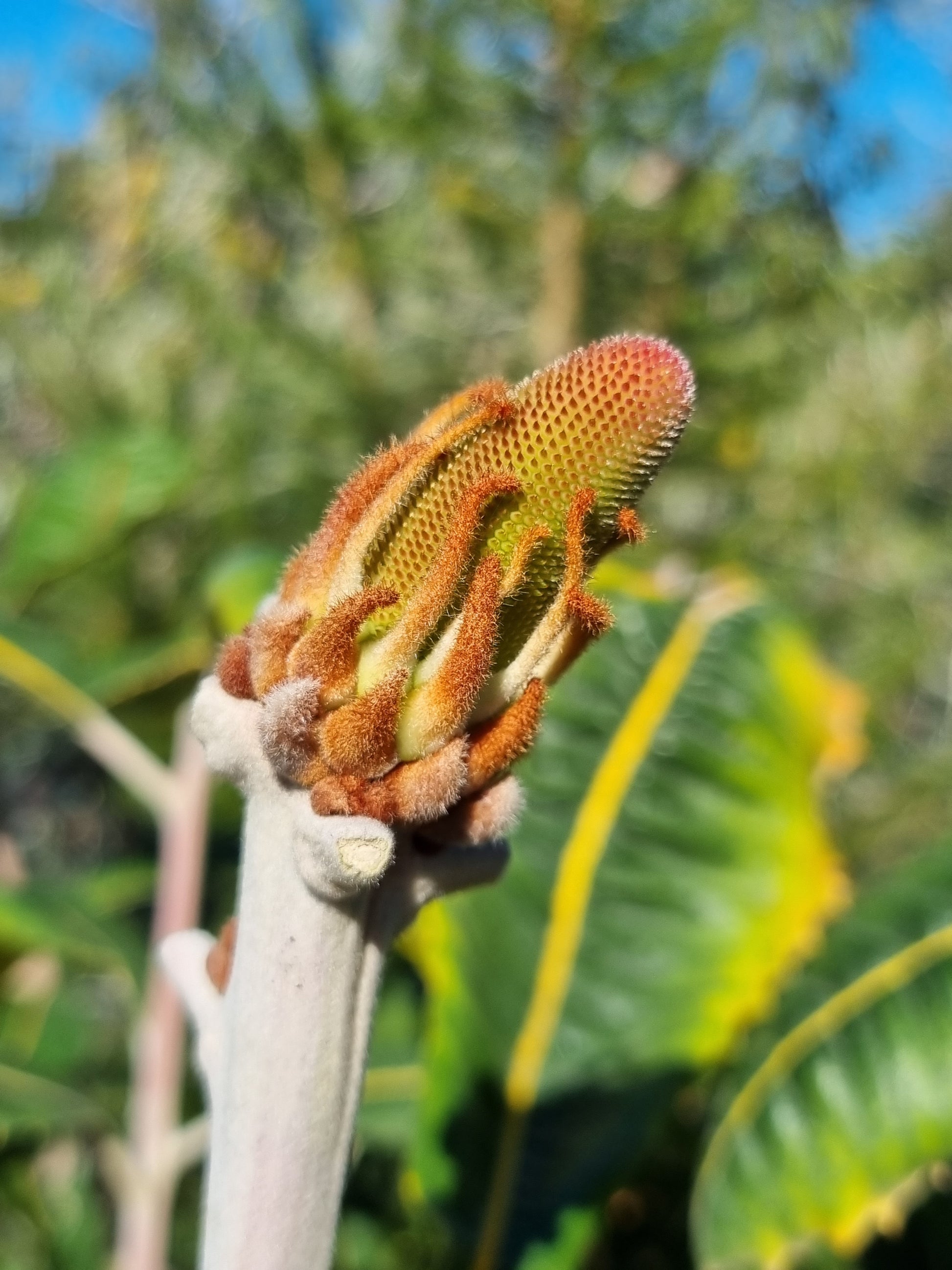 - Flowers: Cylindrical spikes that start green and mature to golden-brown; bloom from autumn to spring.